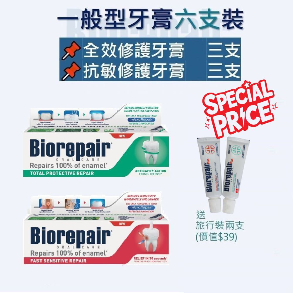 Biorepair全效抗敏各三支牙膏套裝 送牙膏旅行裝兩支(隨機)