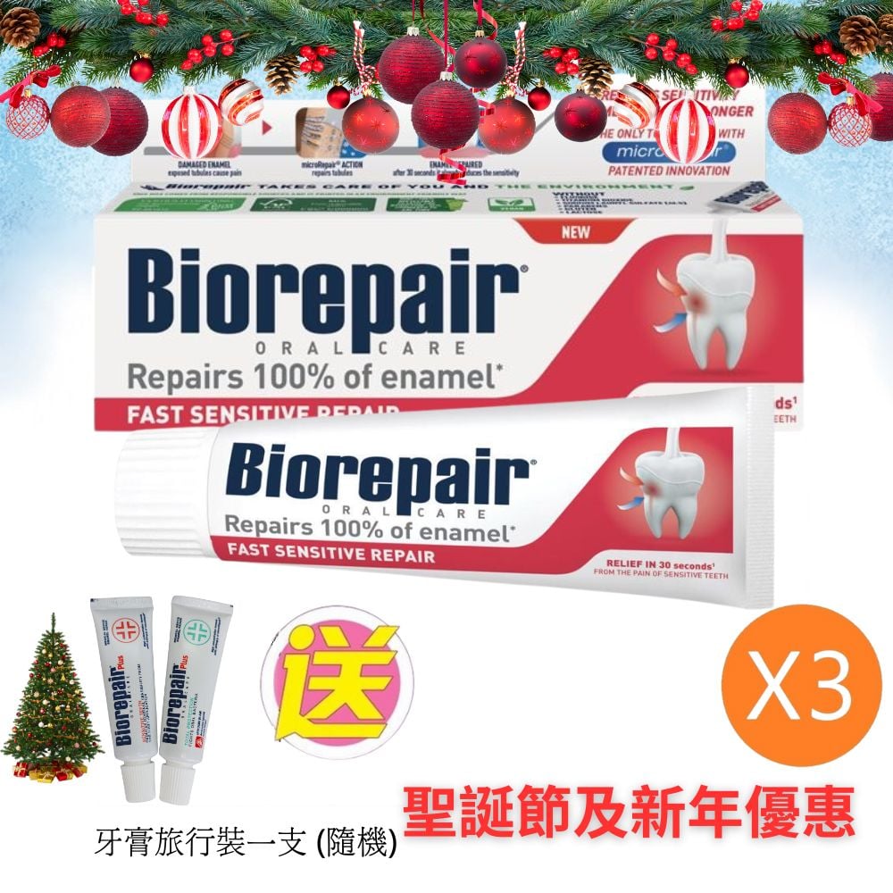Biorepair抗敏修護牙膏3支裝送牙膏旅行裝一支(隨機)
